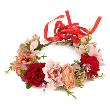 WIANEK na głowę KWIATY czerwony ŚLUBNY piwonie