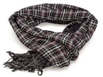 SZAL brązowy KRATKA srebrna nić