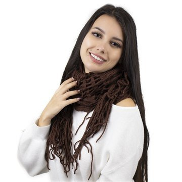 SZAL miękki AŻUROWY brązowy dziergany