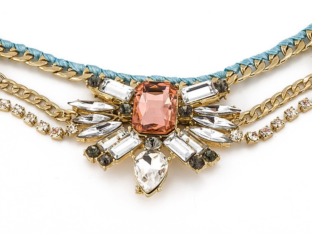 Opinie o NASZYJNIK złoto turkusowy RÓŻOWE KRYSZTAŁY kolia