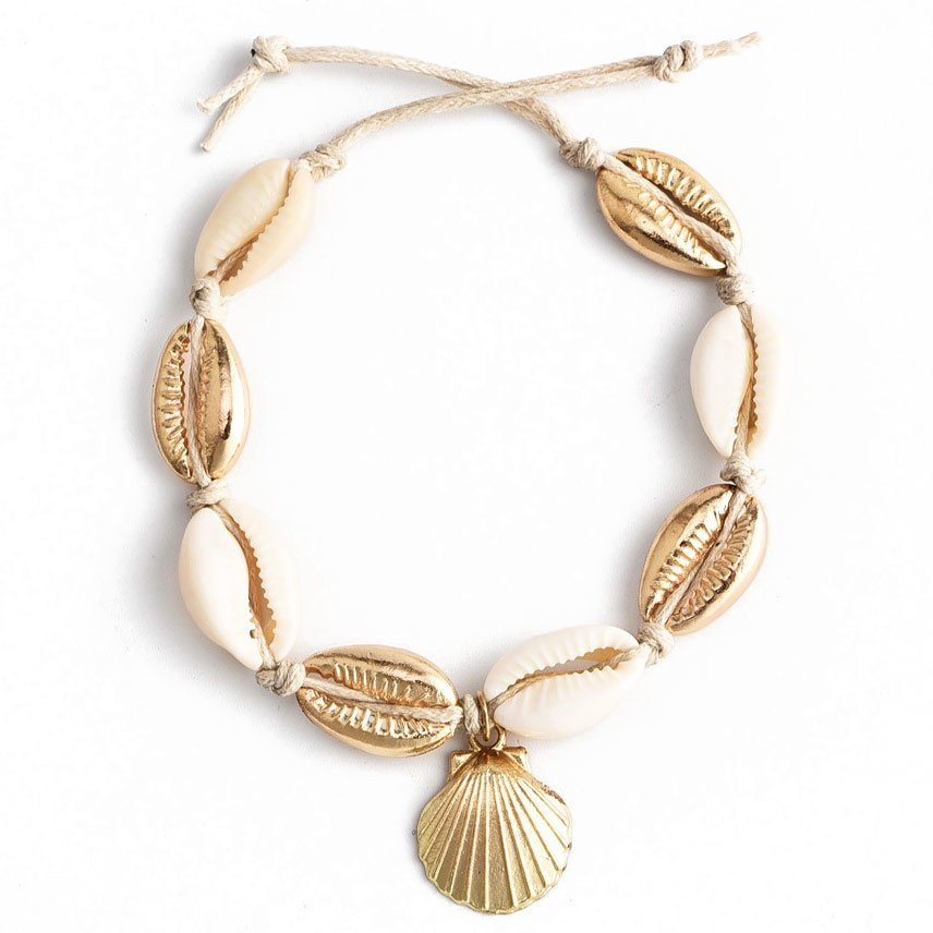 BRANSOLETKA na NOGĘ na KOSTKĘ sznurek MUSZELKI