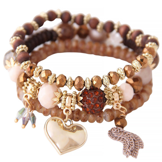 - ZESTAW BRANSOLETEK koraliki chwost SERCE, BRĄZ