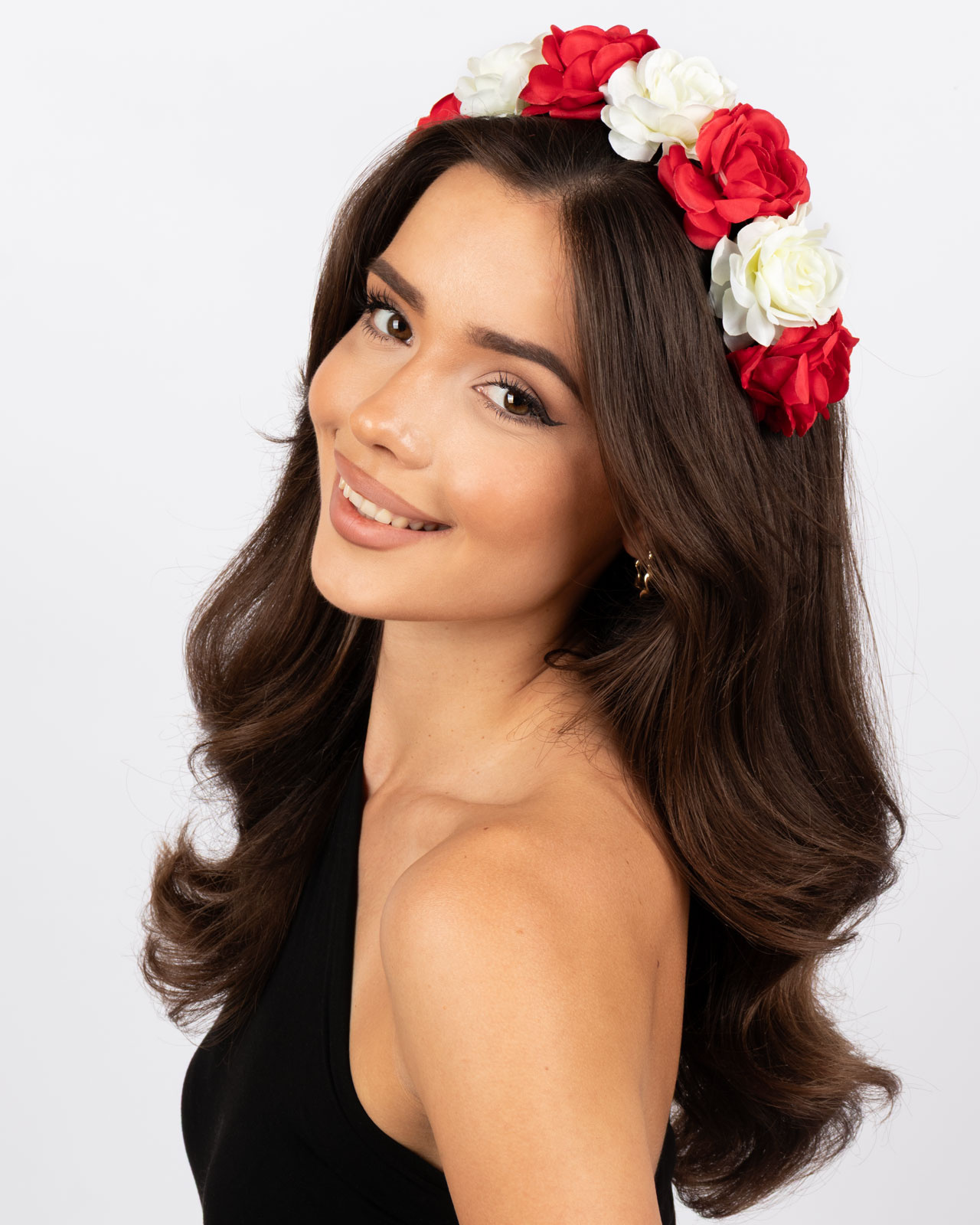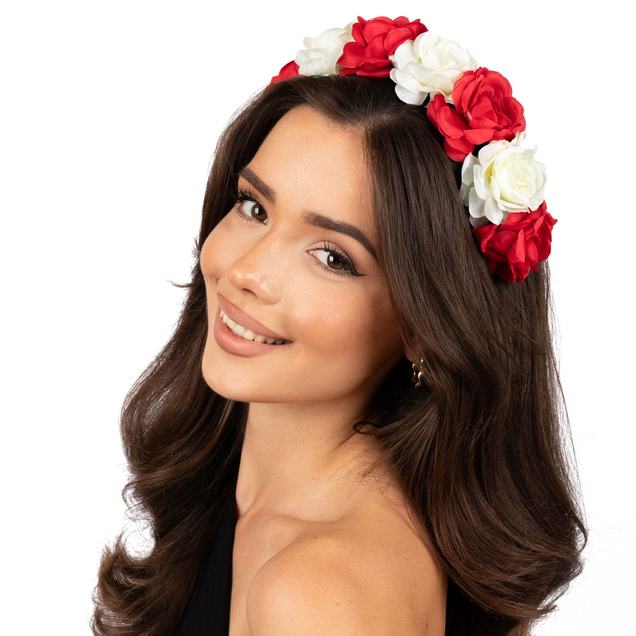 OPASKA WIANEK na głowę biało czerwony KWIATY regionalny MECZ FOLK