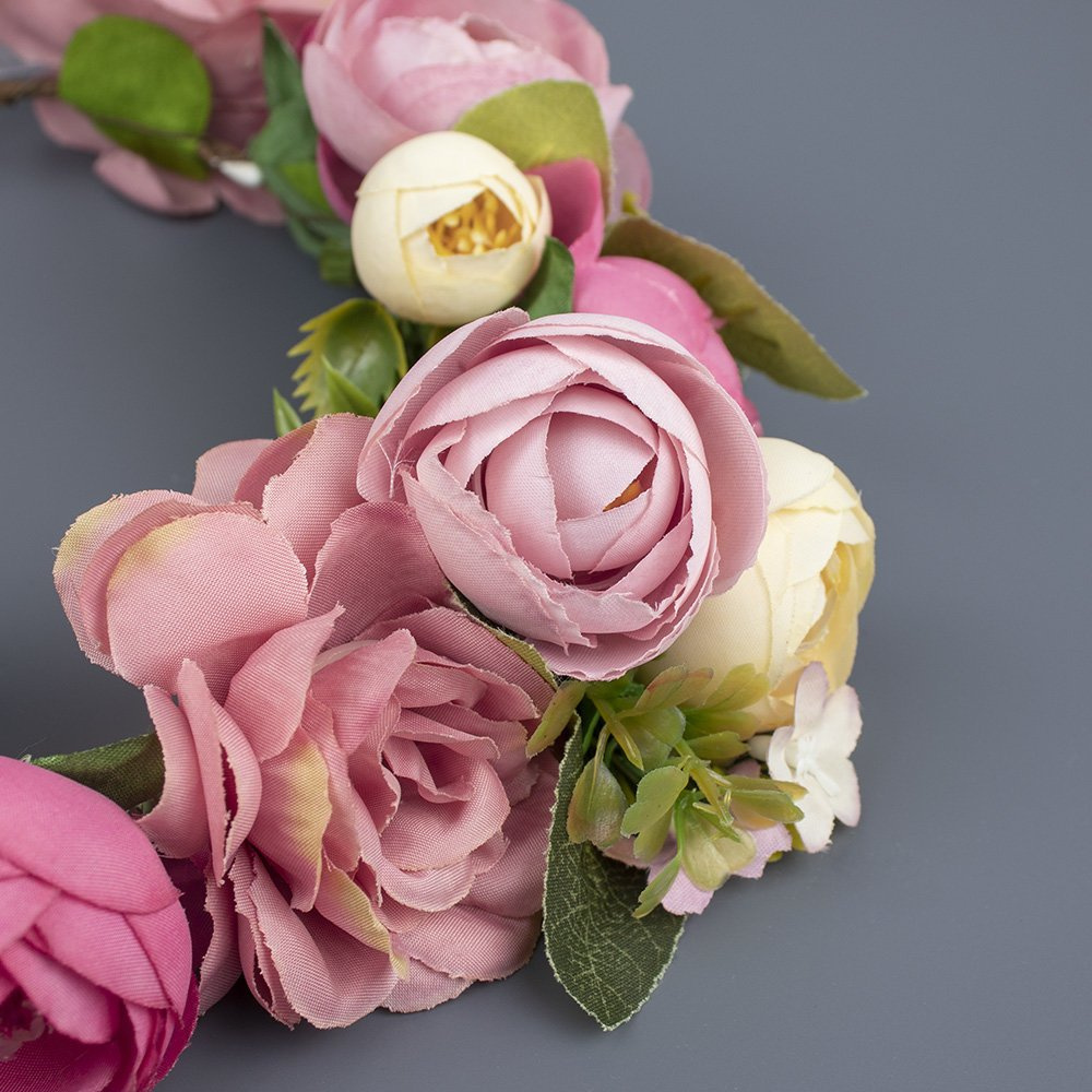 WIANEK na głowę BOHO kwiaty RÓŻOWY ślubny PIWONIE