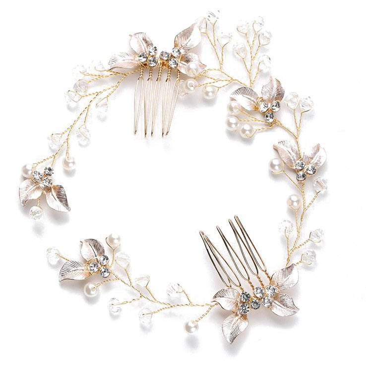 OZDOBA ŚLUBNA do włosów GRZEBYK gałązka złota PEREŁKI ślub