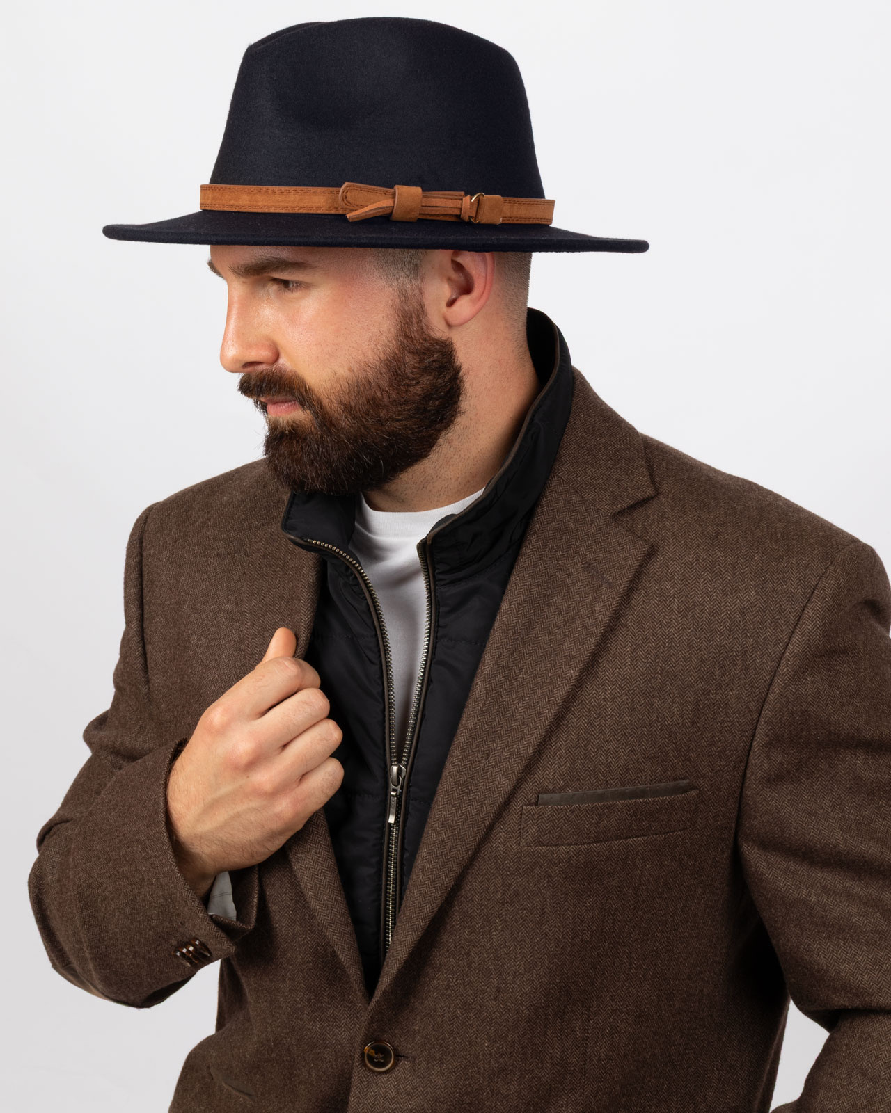 kapelusz ozdobiony zamszowym paskiem z klamerką