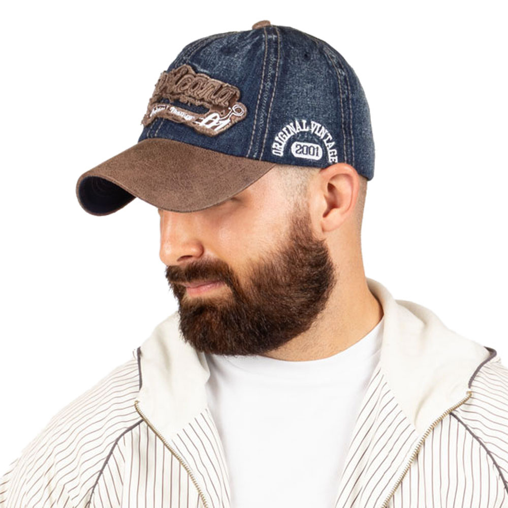 Czapka z daszkiem kaszkietówka BEJSBOLÓWKA męska JEANSOWA retro