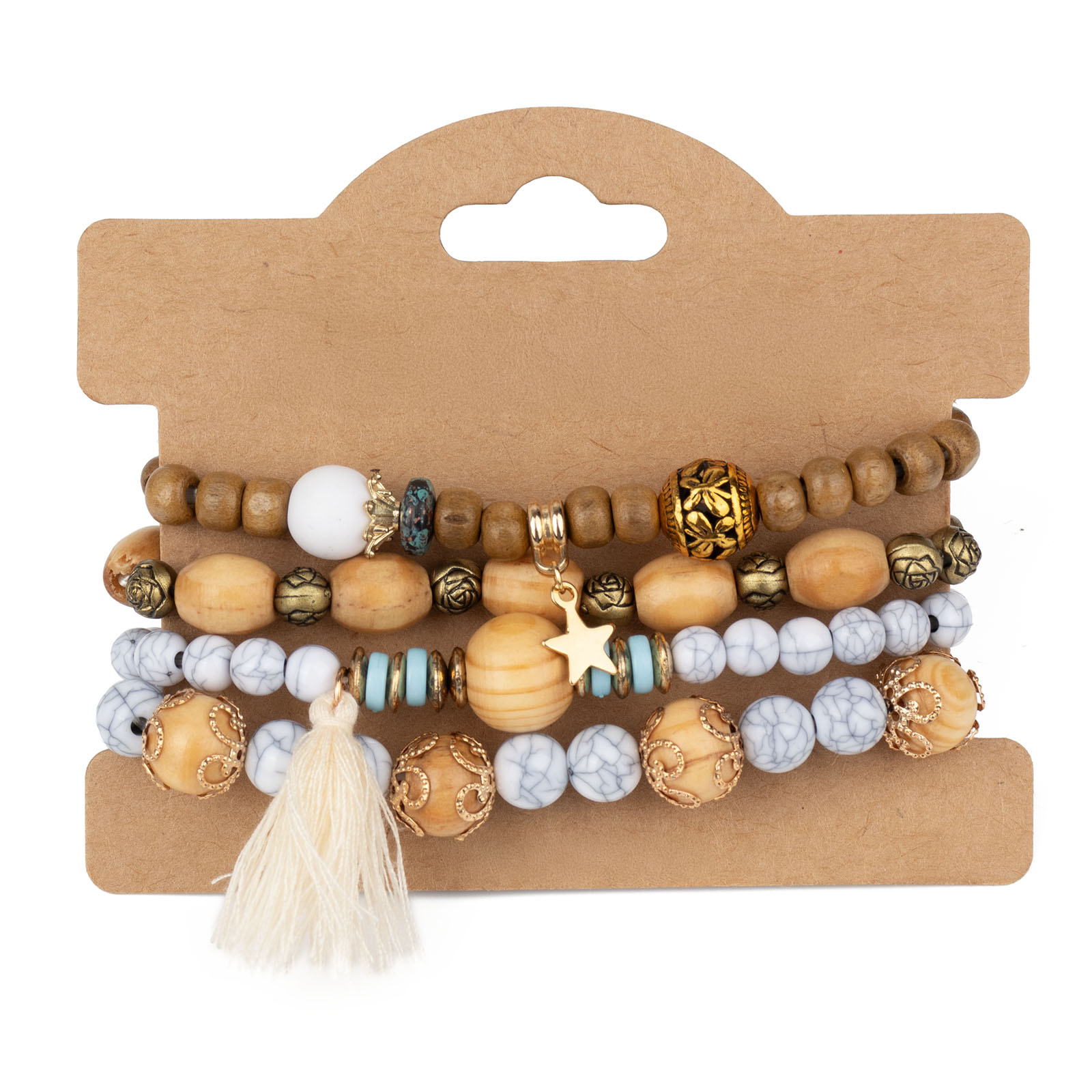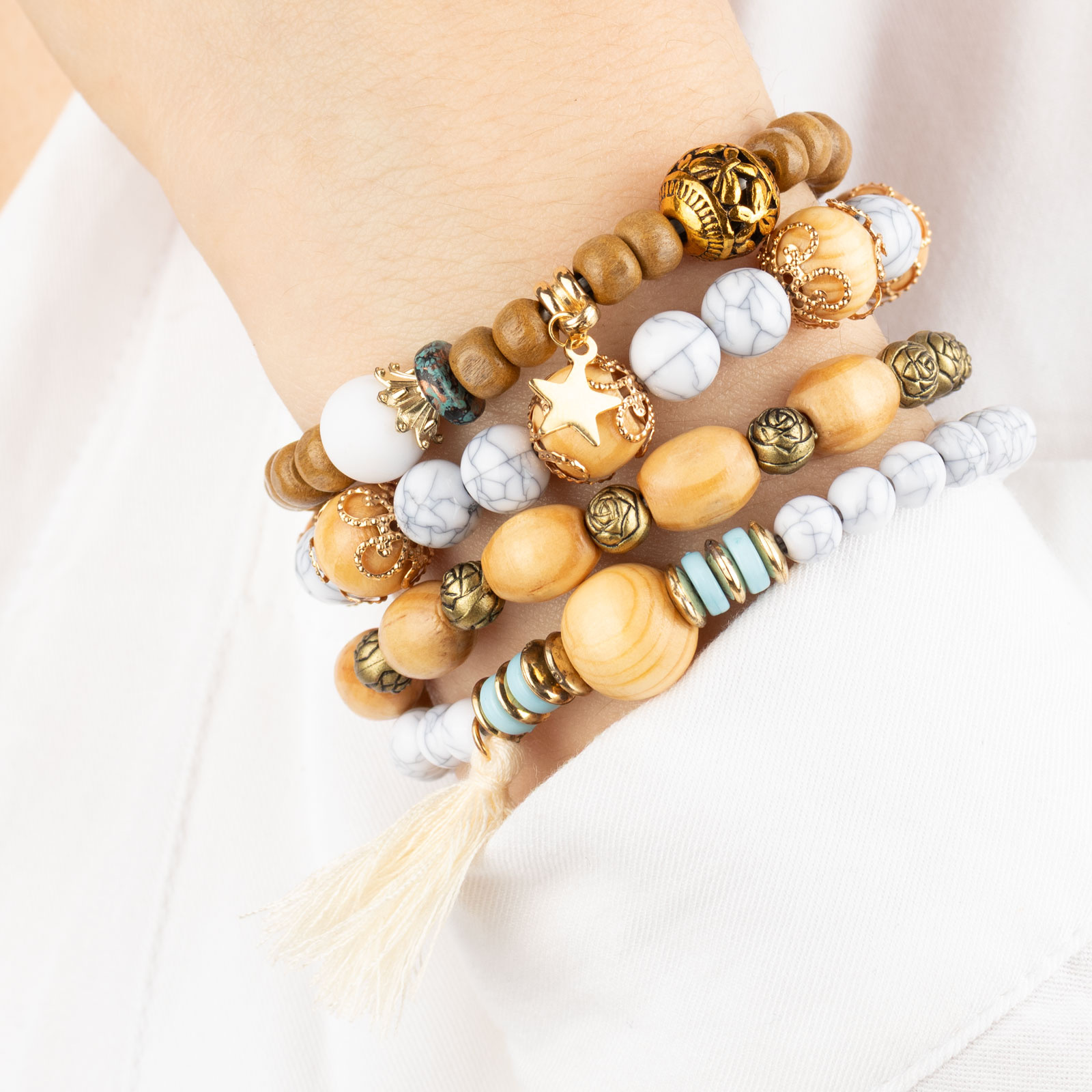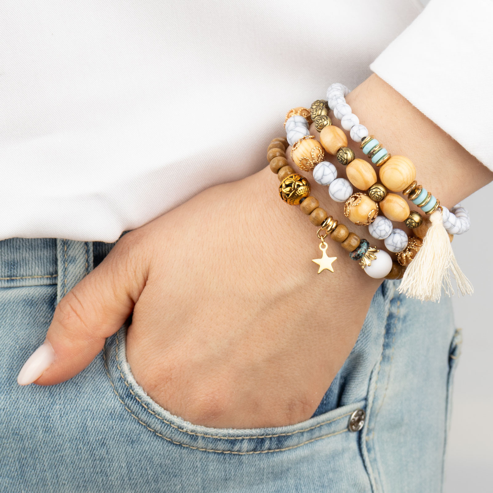 ZESTAW BRANSOLETEK koraliki chwost gwiazdka KOMPLET 4 SZTUKI