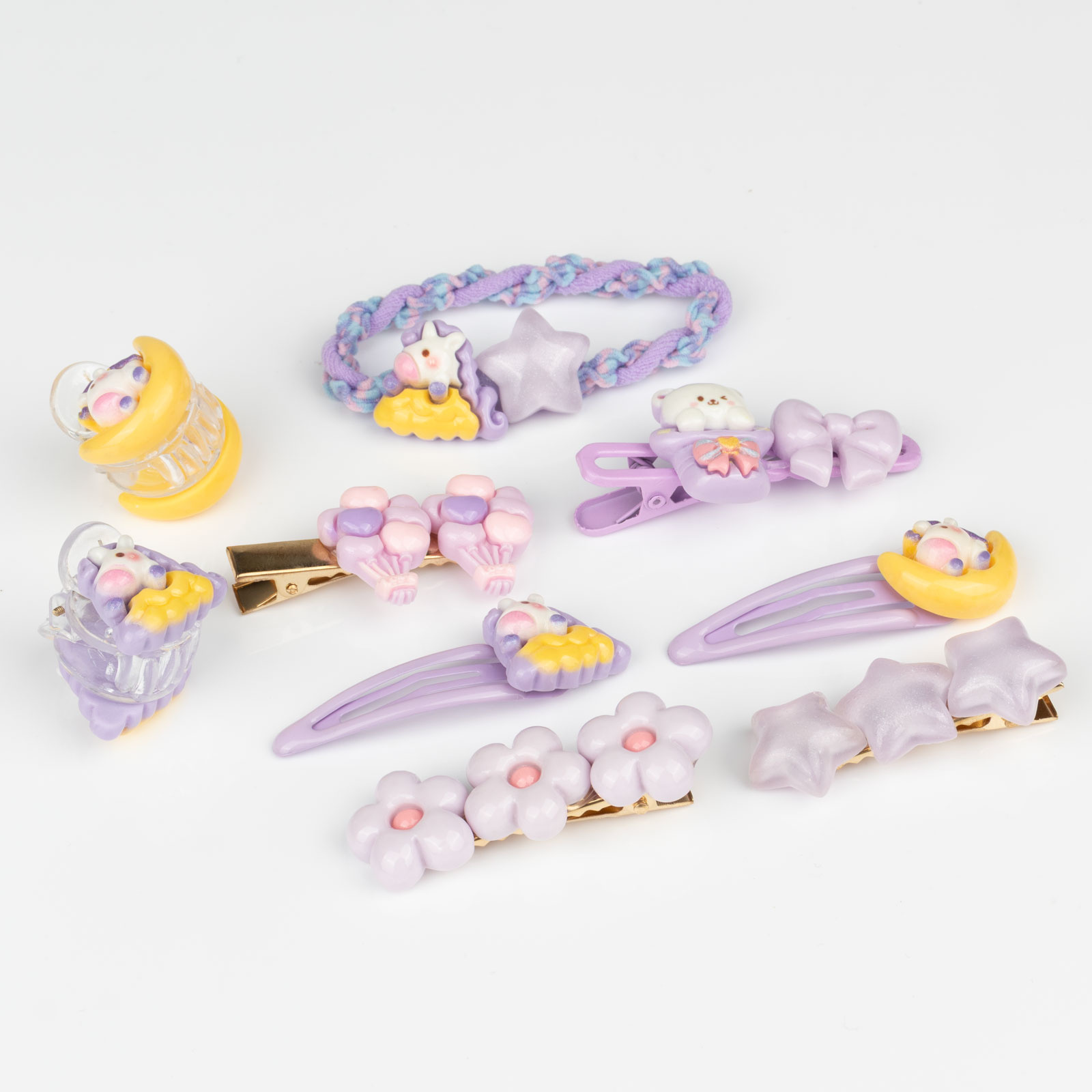 SPINKI DO WŁOSÓW ZESTAW spinek dla dziewczynki PYKI + gumeczka 9 SZTUK