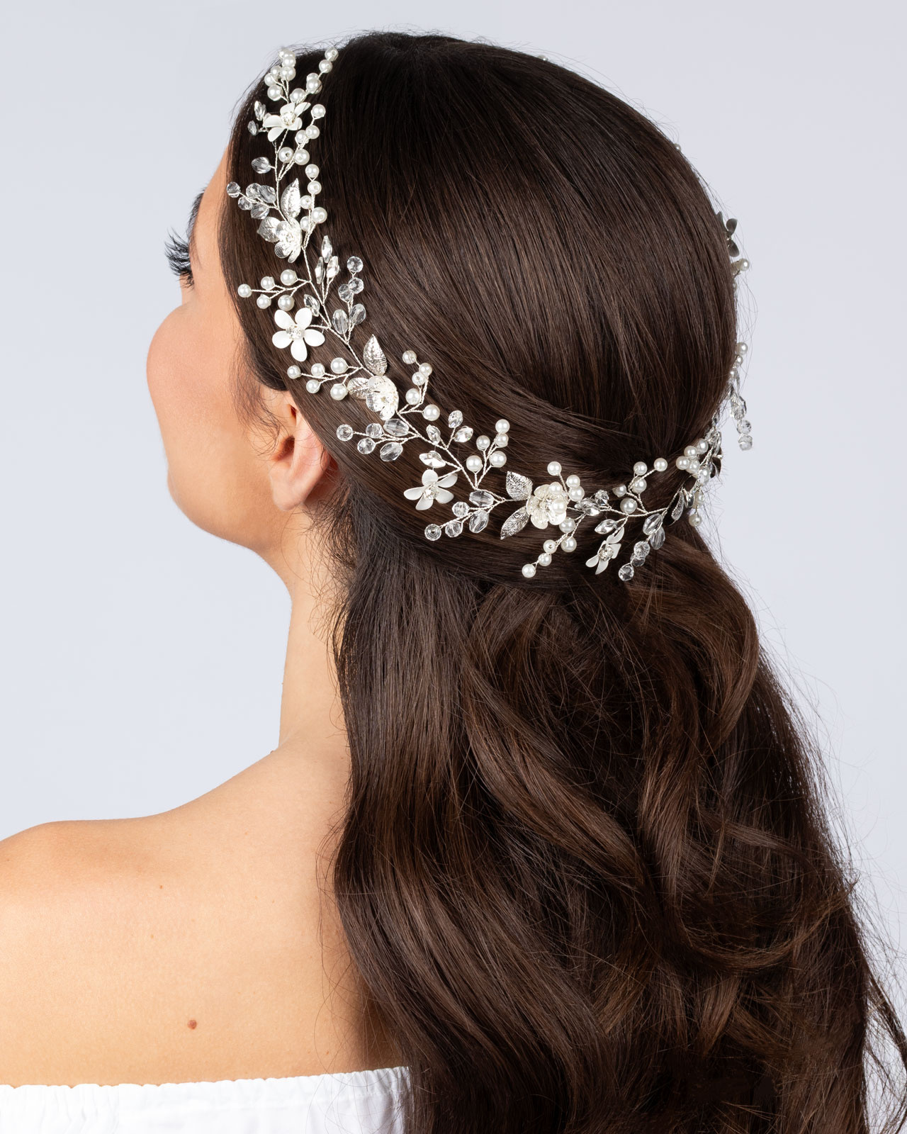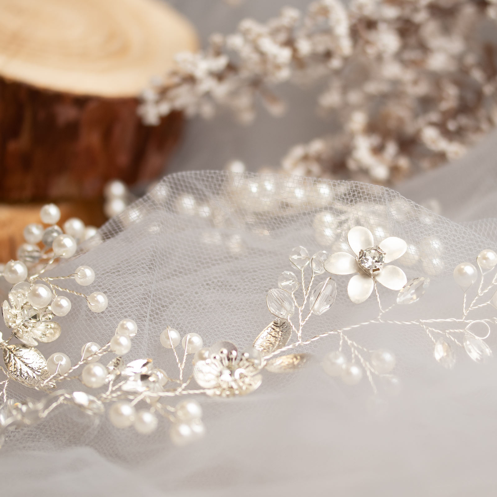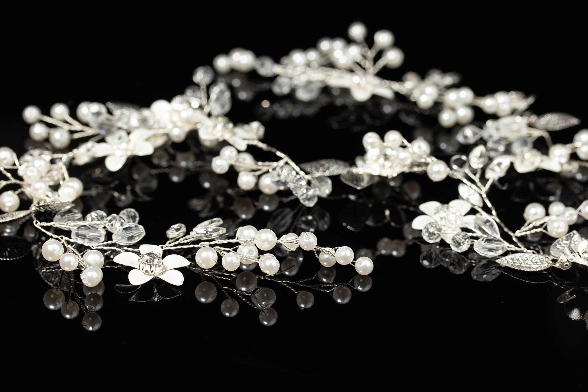 OZDOBA DO WŁOSÓW długa ŚLUBNA STROIK ŚLUB SREBRNA