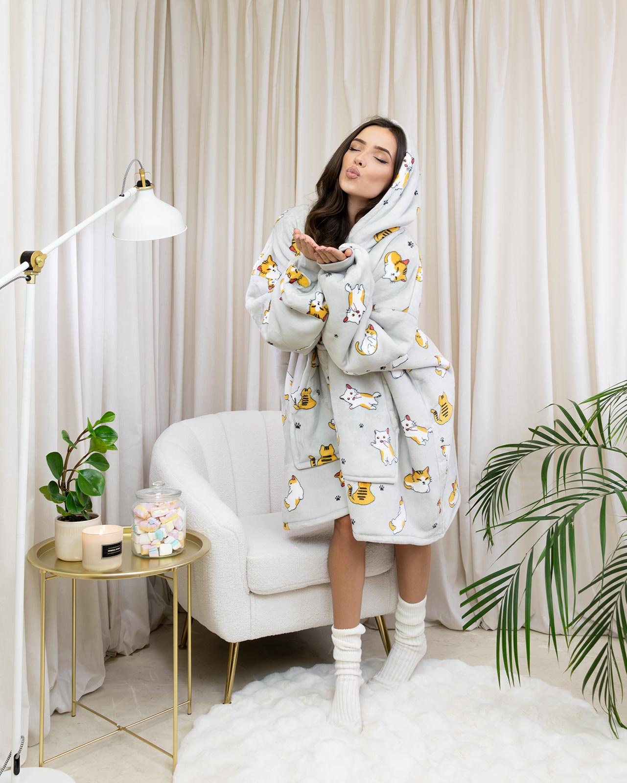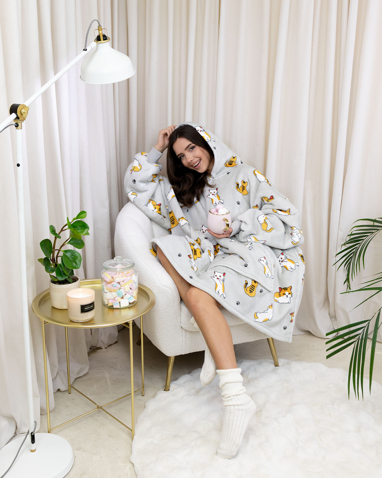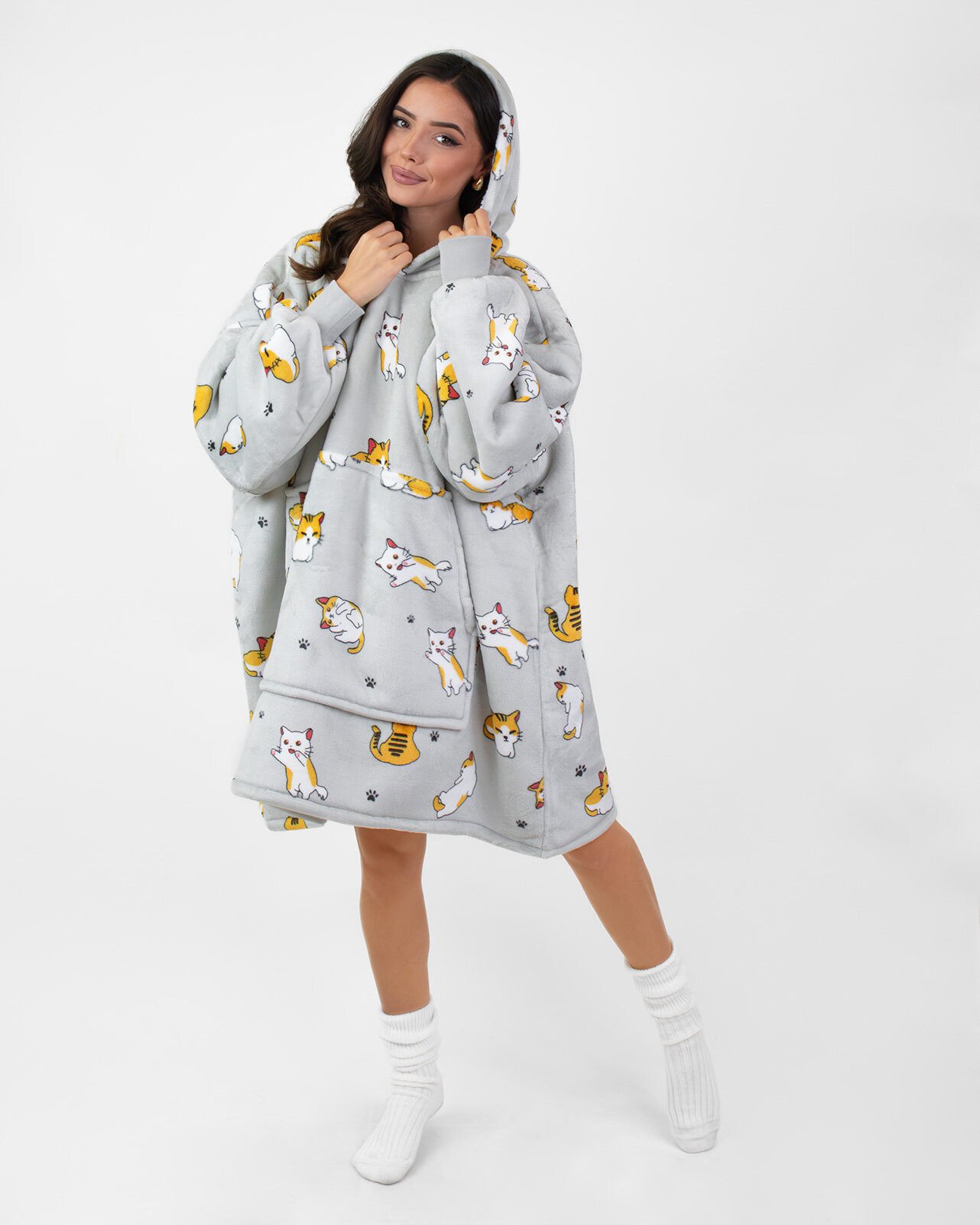 KOCOBLUZA KOC BLUZA CIEPŁA 2w1 GRUBA XXL FUTRZAK POLAR z kapturem OVERSIZE