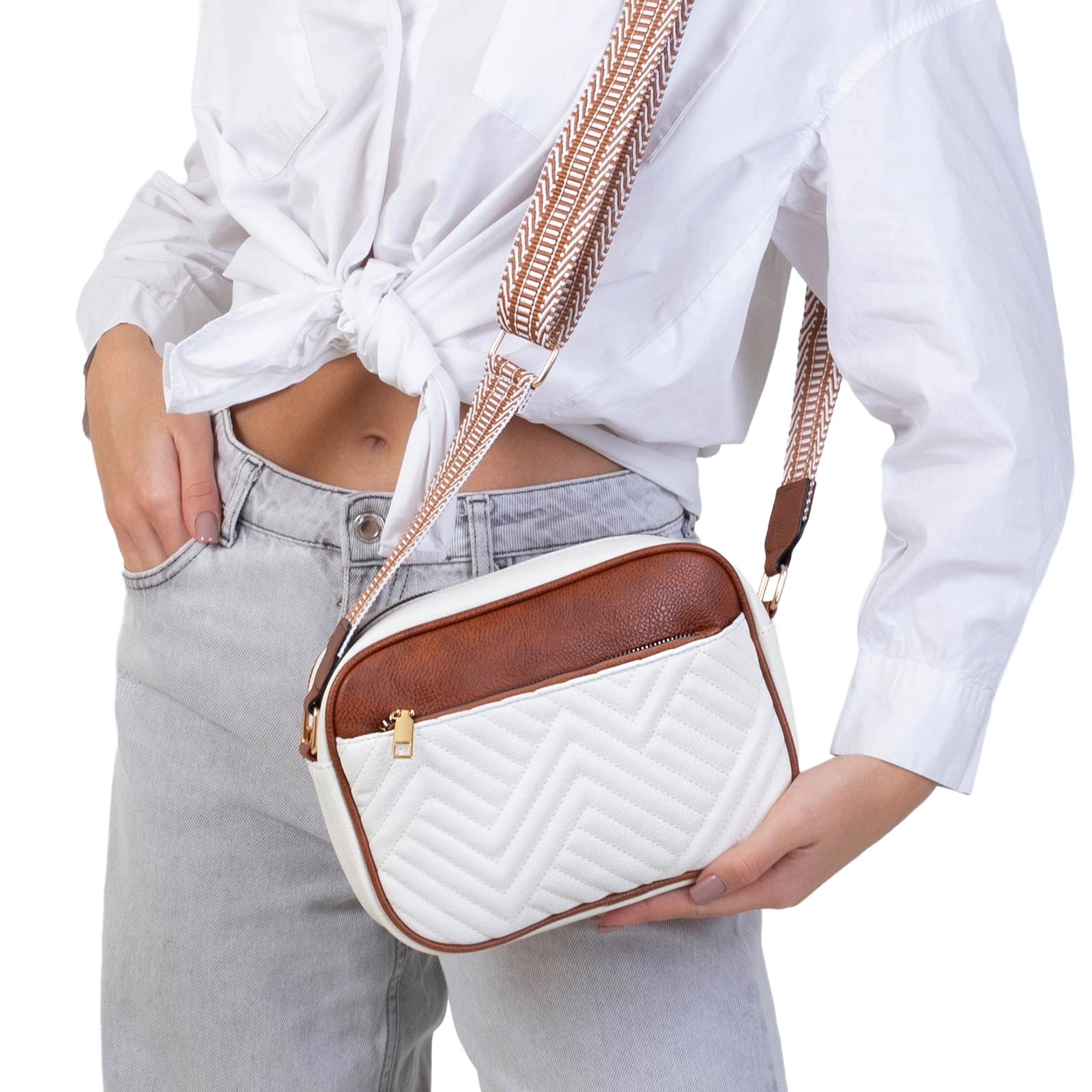 Alessio TOREBKA Damska PIKOWANA CROSSBODY na ramię PASEK QUILTED