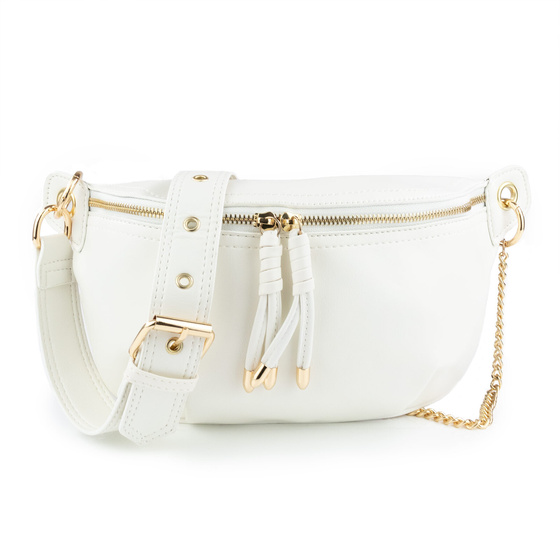 To, co wyróżnia ten model, to jego niezwykła funkcjonalność. Dzięki szerokiemu, parcianemu paskowi z możliwością regulacji, możesz nosić ją na wiele sposobów: klasycznie na biodrach, w talii, przewieszoną na skos przez ramię (crossbody) lub po prostu na jednym ramieniu jak małą torebkę. Główna komora jest zaskakująco pojemna – bez problemu zmieścisz w niej duży portfel, telefon, klucze i kosmetyki. Dodatkowa, bezpieczna kieszonka na zamek wewnątrz to idealne miejsce na karty płatnicze czy dokumenty. Solidne zamki i staranne wykończenie gwarantują, że nerka posłuży Ci przez długi czas.