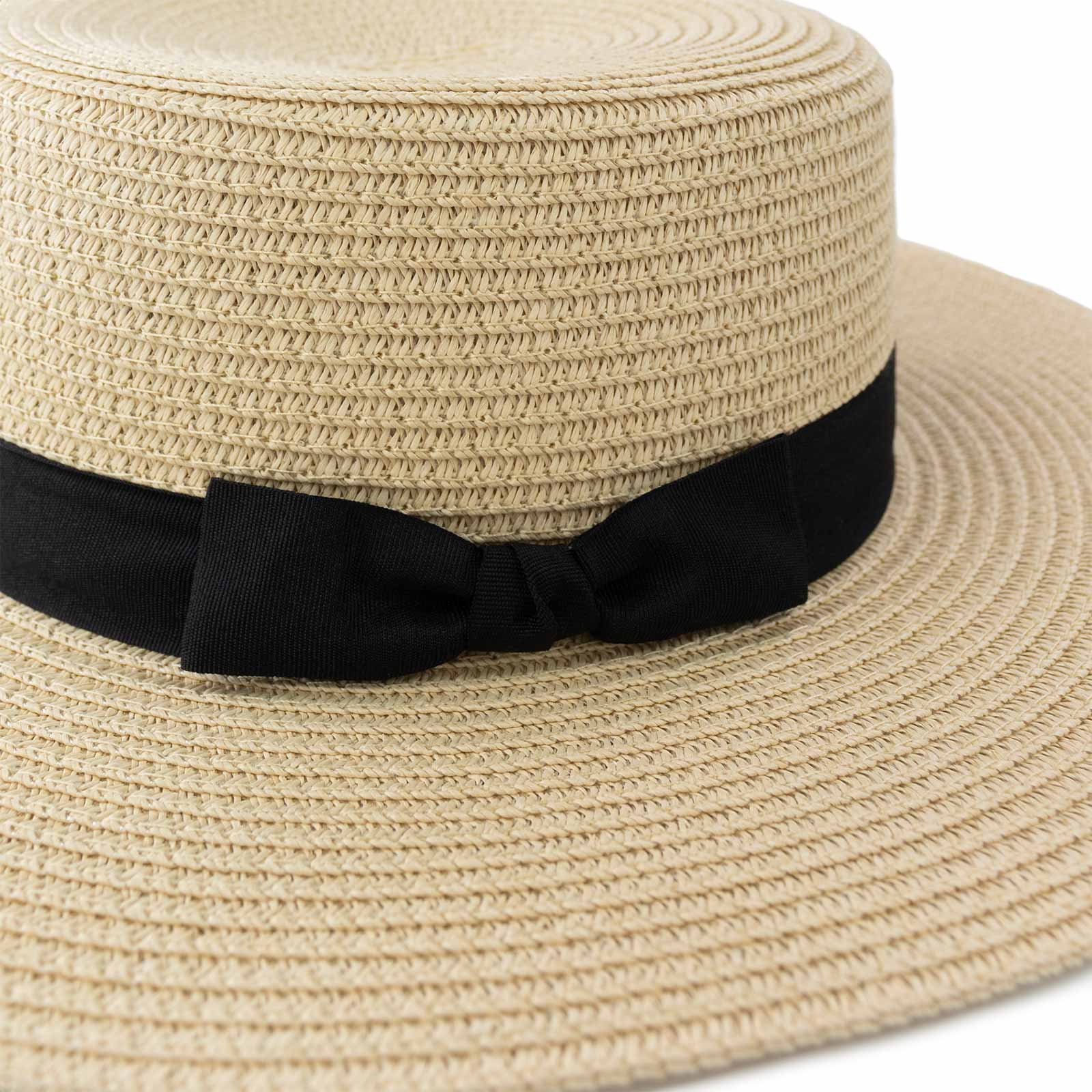 KAPELUSZ pleciony KANOTIER (boater) damski SŁOMKOWY małe rondo LATO KOKARDA