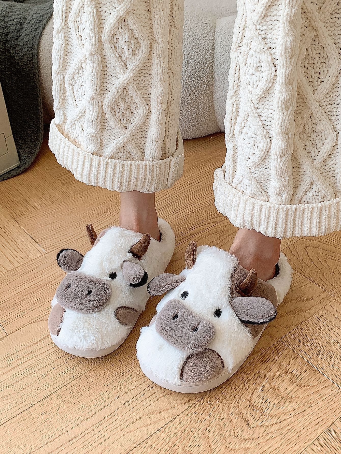 KAPCIE damskie Ciepłe PLUSZOWE CIAPY OCIEPLANE KROWA KRÓWKA r. 36-37
