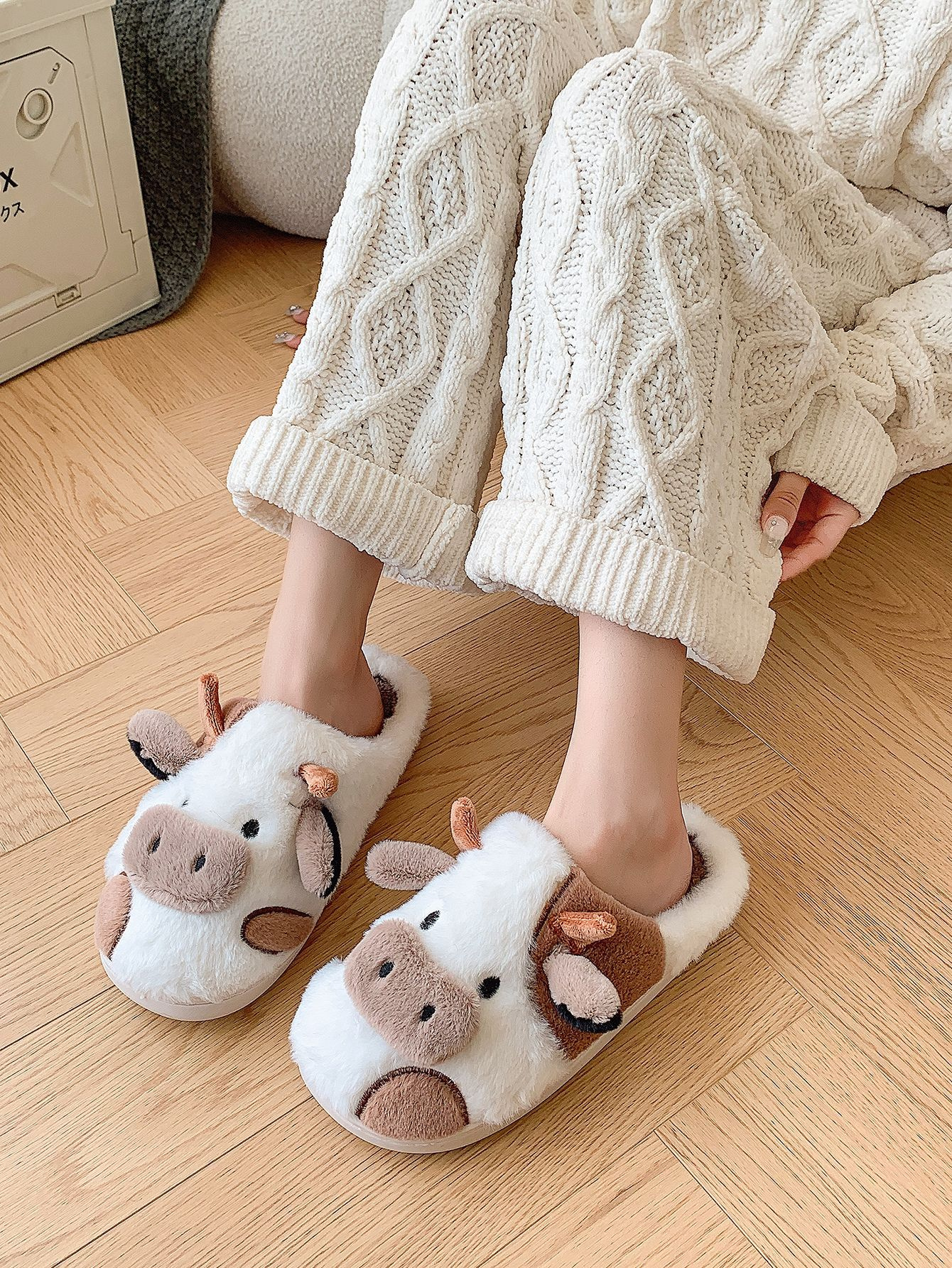 KAPCIE damskie Ciepłe PLUSZOWE CIAPY OCIEPLANE KROWA KRÓWKA r. 38-39