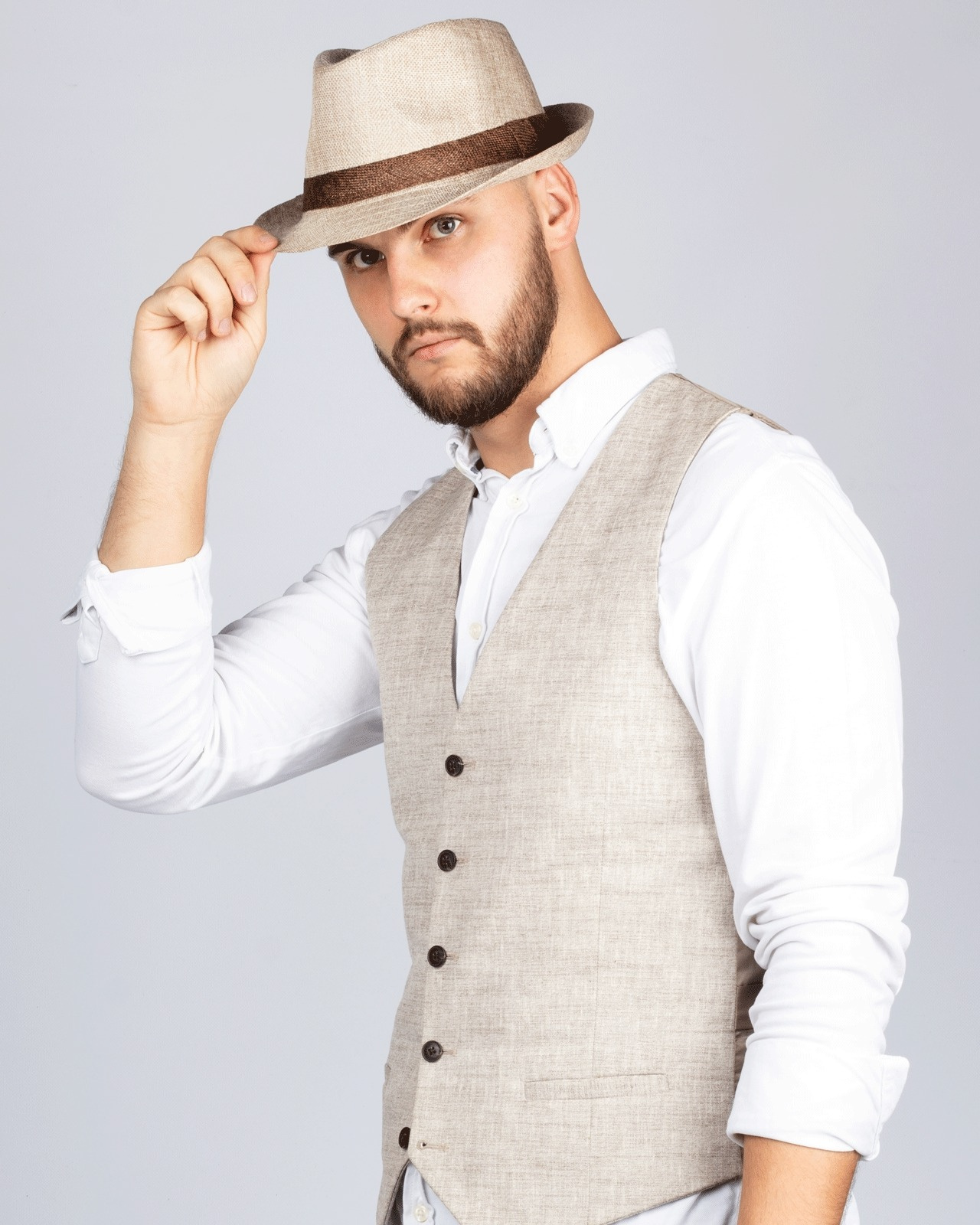 , kapelusz posiada wstążkę ściągającą dzięki której można zmniejszyć obwód kapelusza