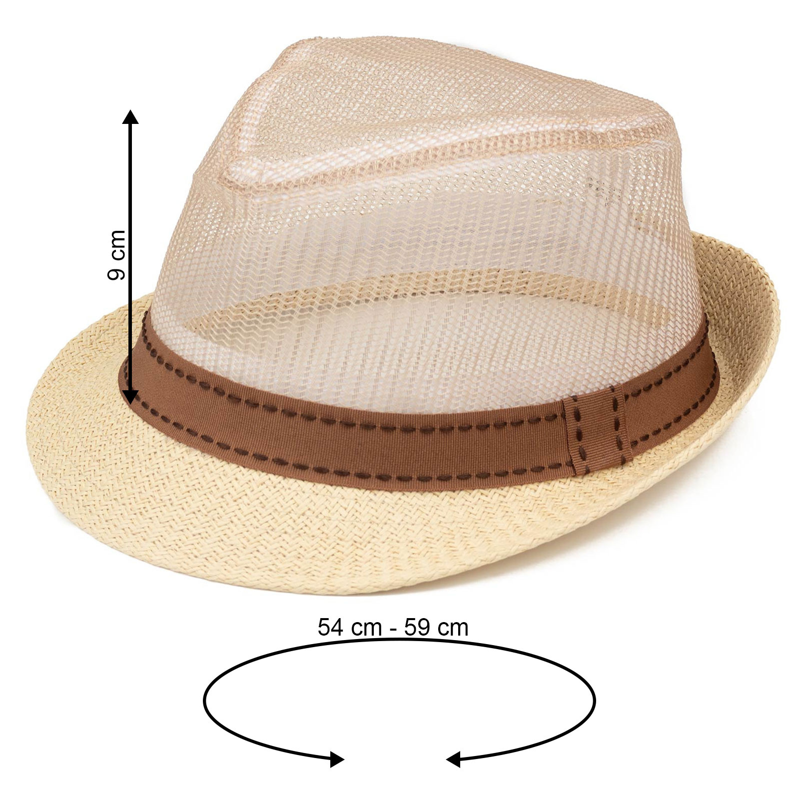 , kapelusz posiada wstążkę ściągającą dzięki której można zmniejszyć obwód kapelusza