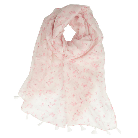 Cienka, prześwitująca chusta z frędzlami na końcu