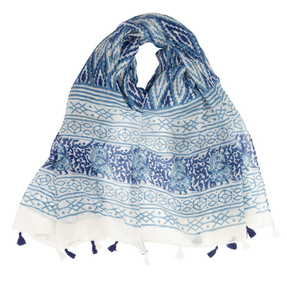 Cienka, prześwitująca chusta z frędzlami na końcu