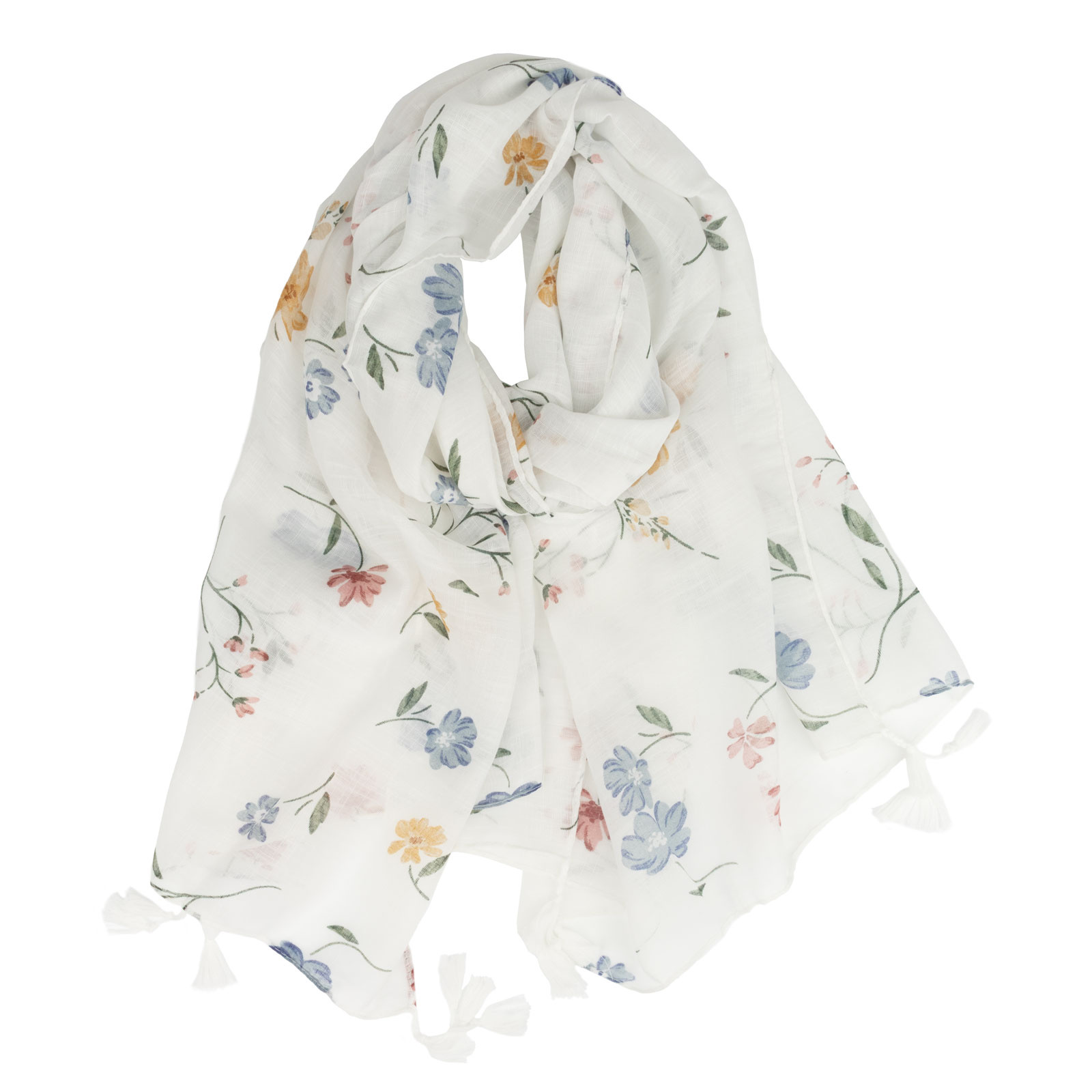 Cienka, prześwitująca chusta z kwiatowym wzorem