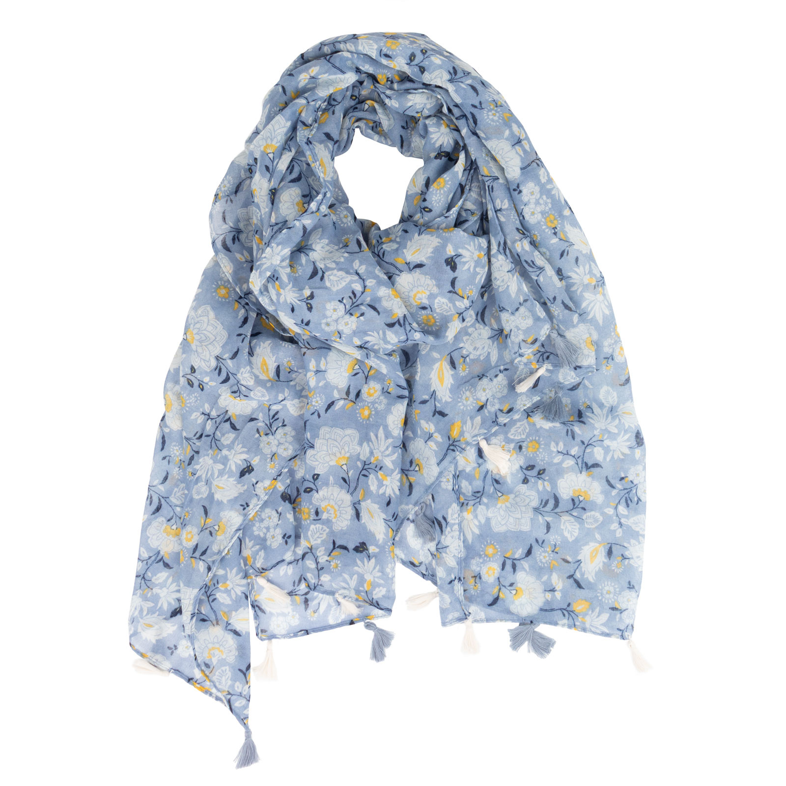 Cienka, prześwitująca chusta z kwiatowym wzorem