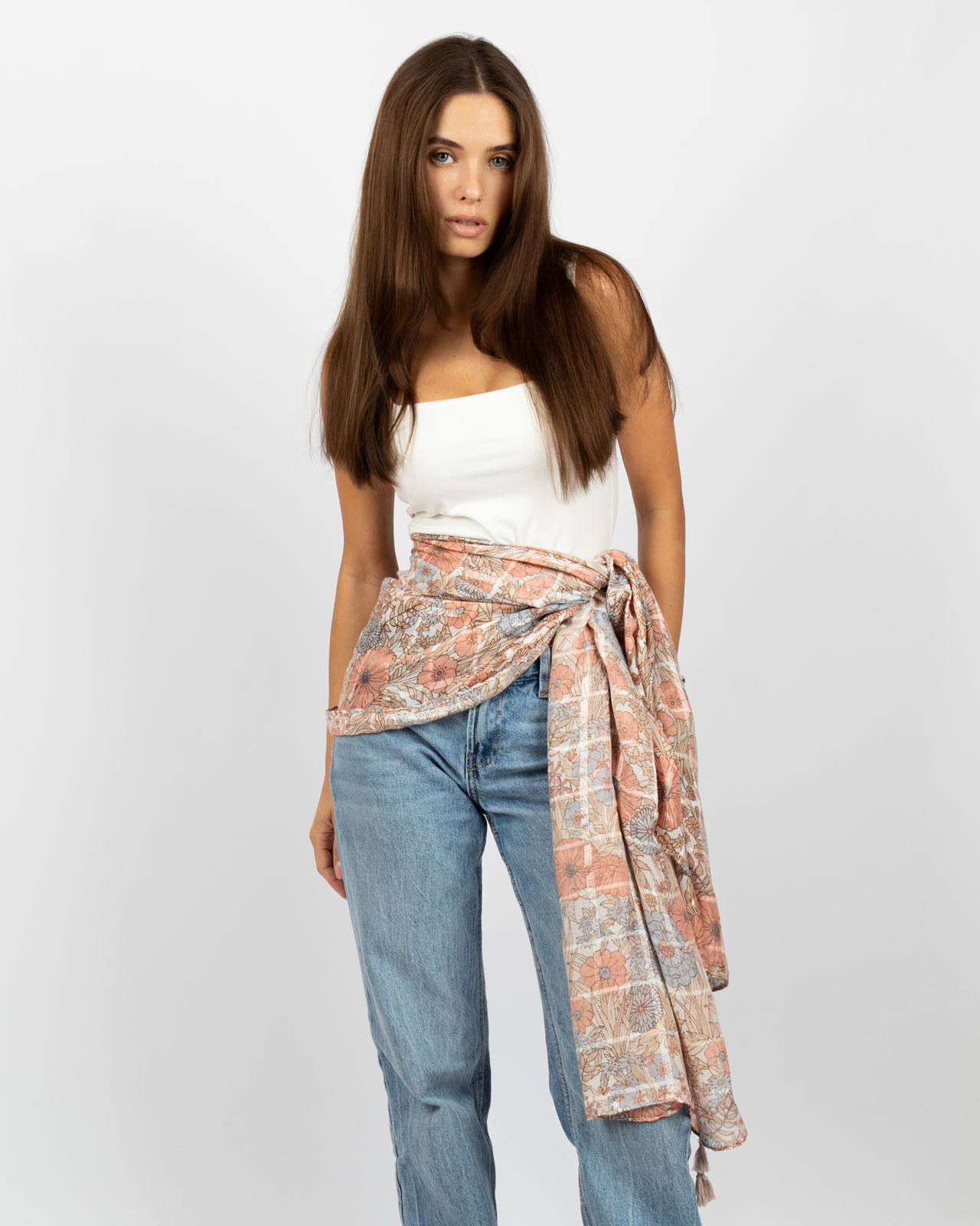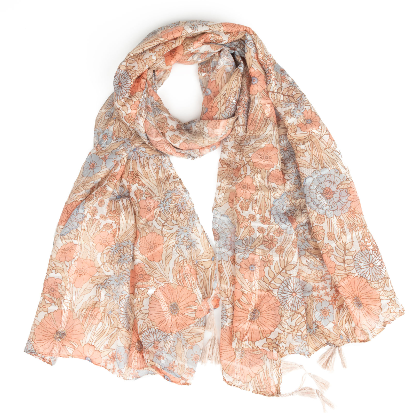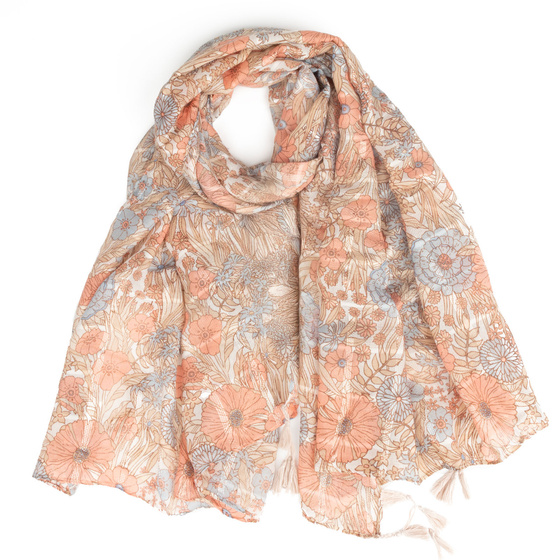 Cienka, prześwitująca chusta z kwiatowym wzorem