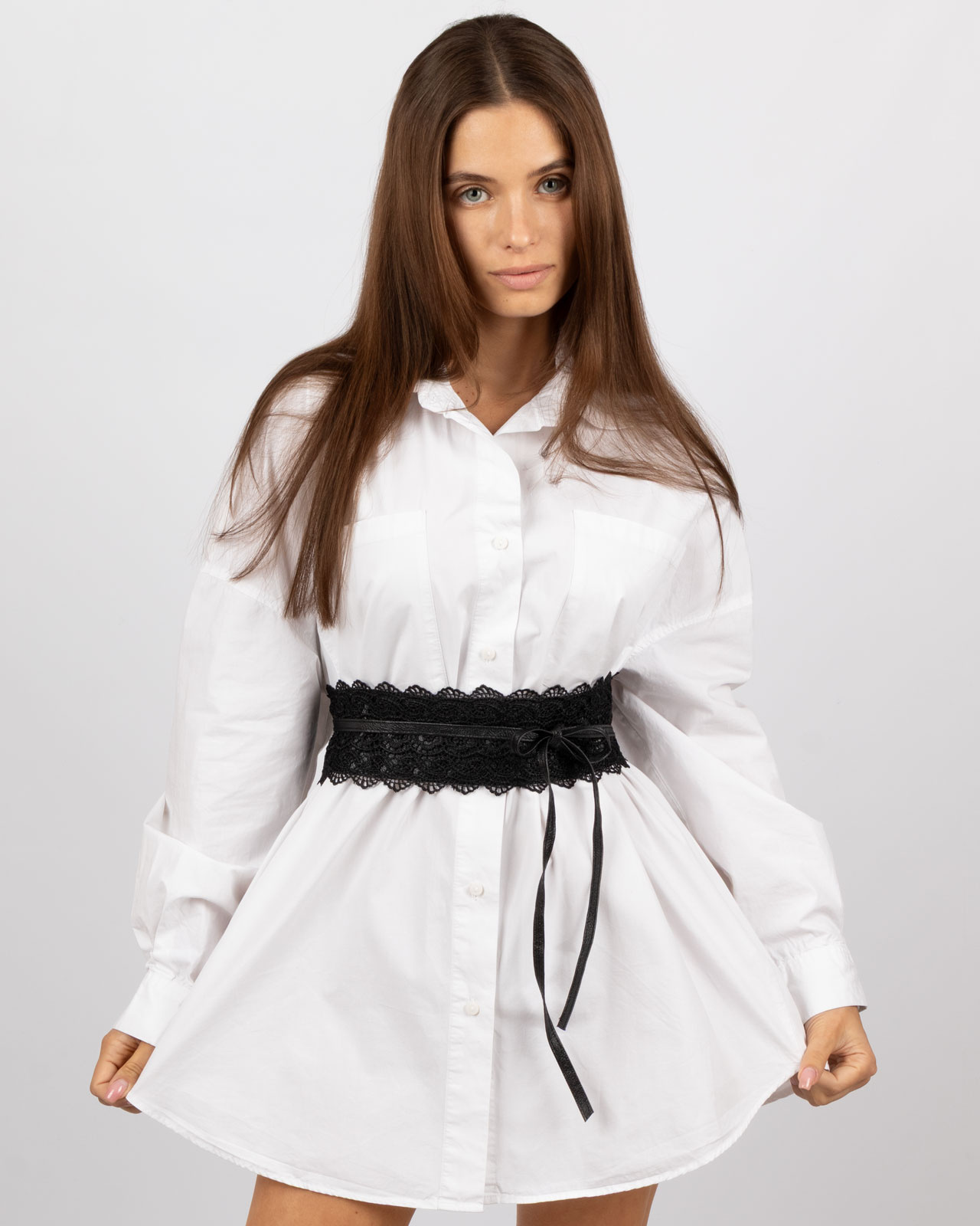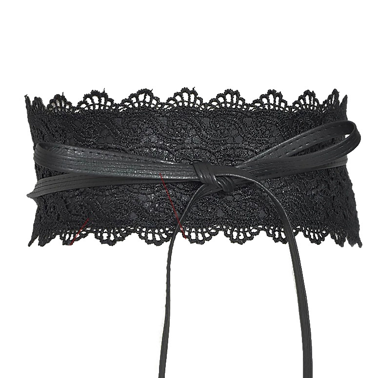 Wiązany pasek ozdobiony czarną koronką