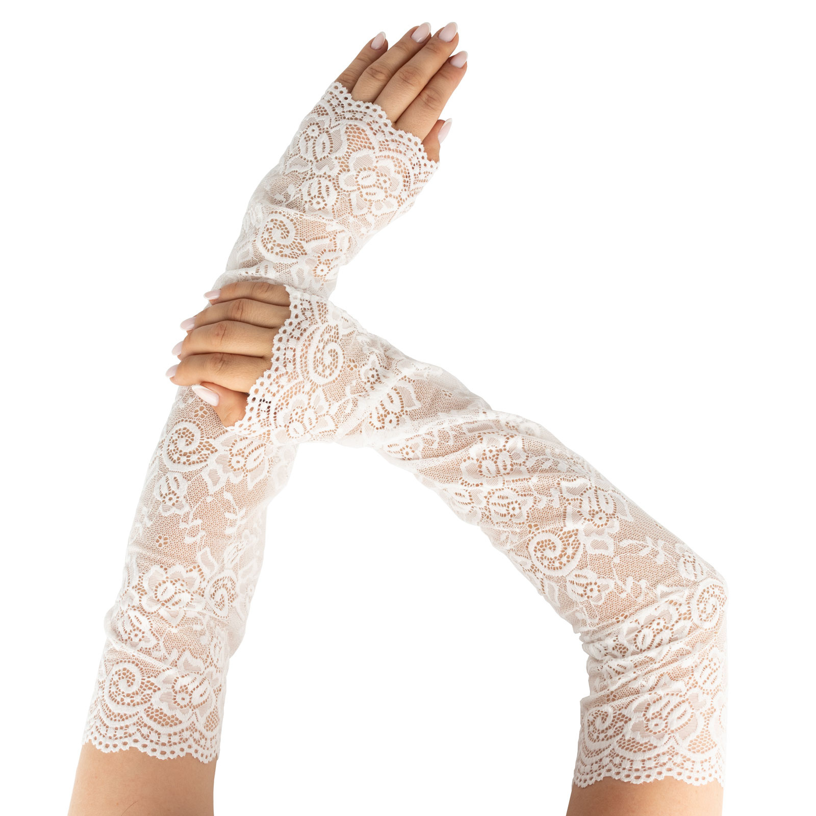 RĘKAWICZKI KORONKOWE Alessio AŻUROWE DŁUGIE VINTAGE Białe