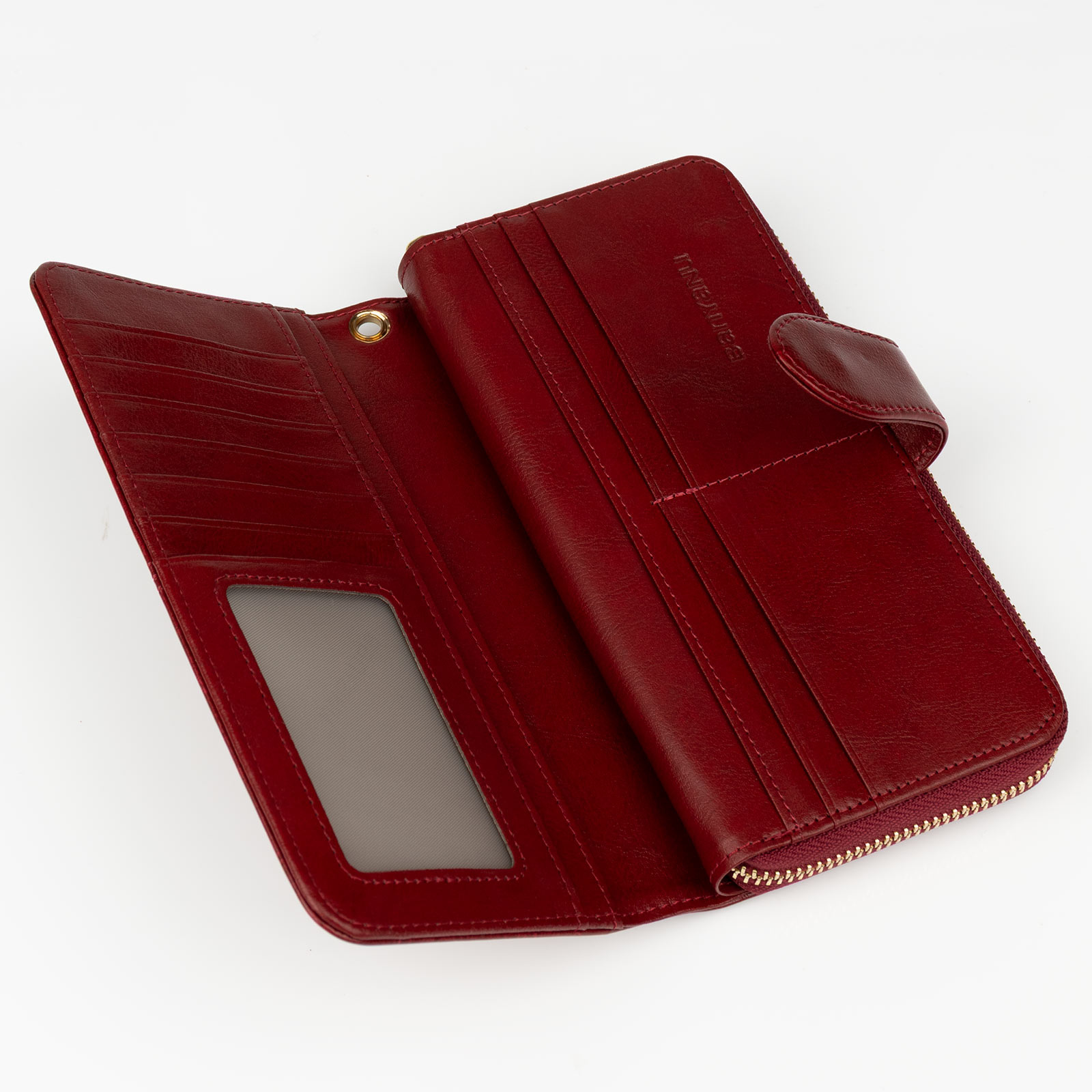 Portfel posiada 18 różnych komór i kieszonek: na banknoty, monety, karty bankowe, zdjęcie, dokumenty (m.in. dowód rejestracyjny)