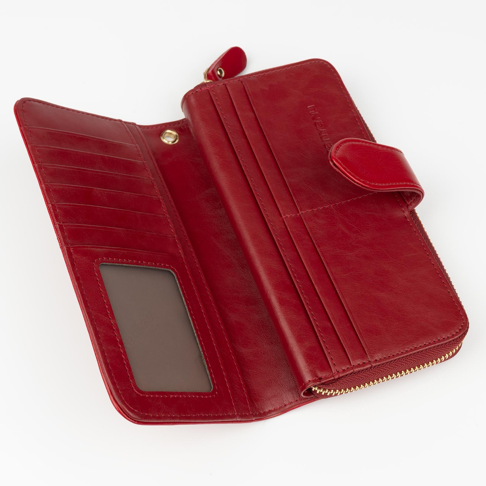 Portfel posiada 18 różnych komór i kieszonek: na banknoty, monety, karty bankowe, zdjęcie, dokumenty (m.in. dowód rejestracyjny)