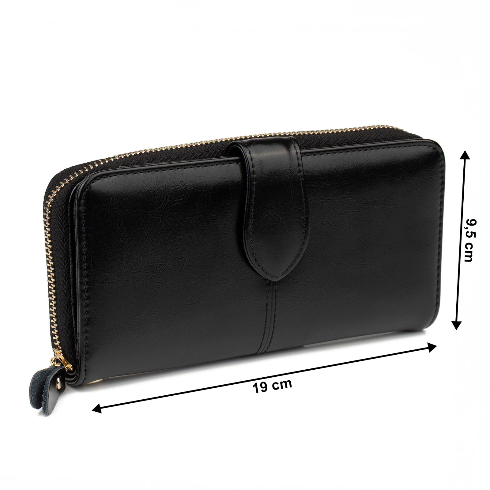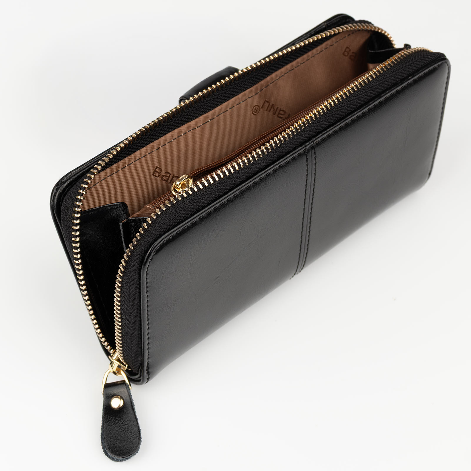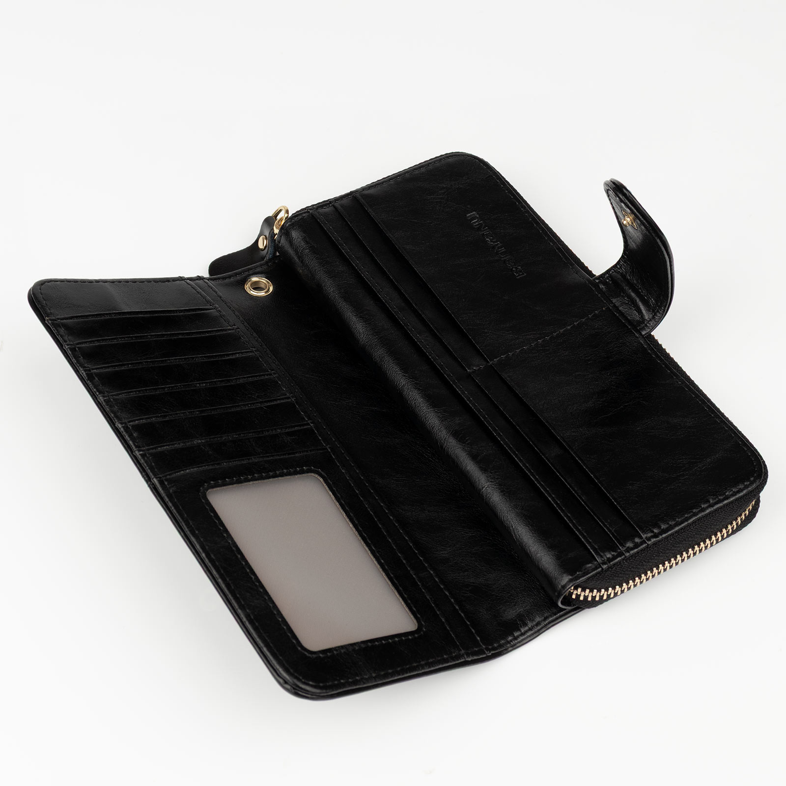 Portfel posiada 18 różnych komór i kieszonek: na banknoty, monety, karty bankowe, zdjęcie, dokumenty (m.in. dowód rejestracyjny)