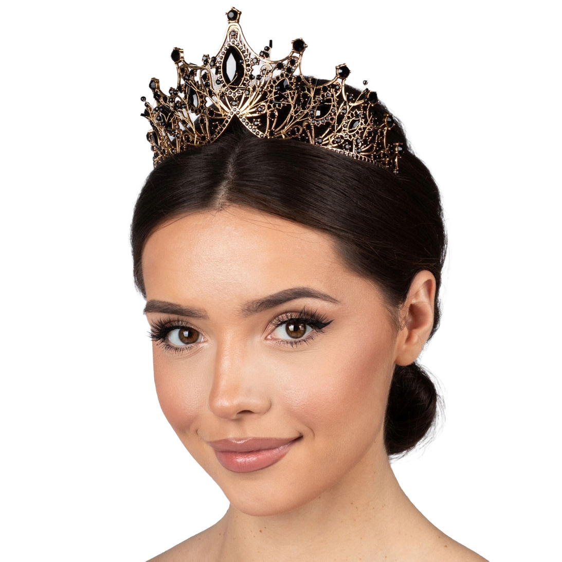 DIADEM Korona Tiara MISS GLOW Wieczorowy CZARNE cyrkonie KRYSZTAŁY