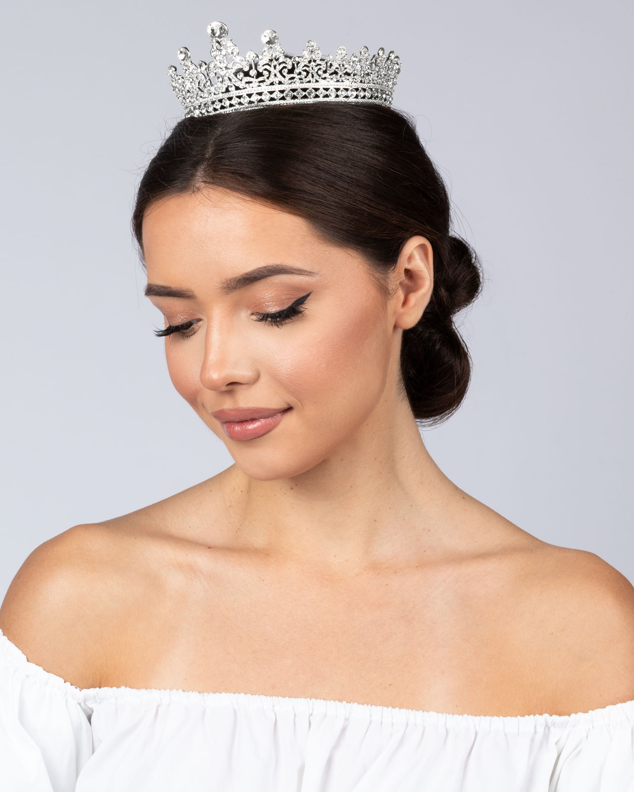 KORONA Diadem Tiara MISS GLOW ŚLUBNA SREBRNA cyrkonie KRYSZTAŁY