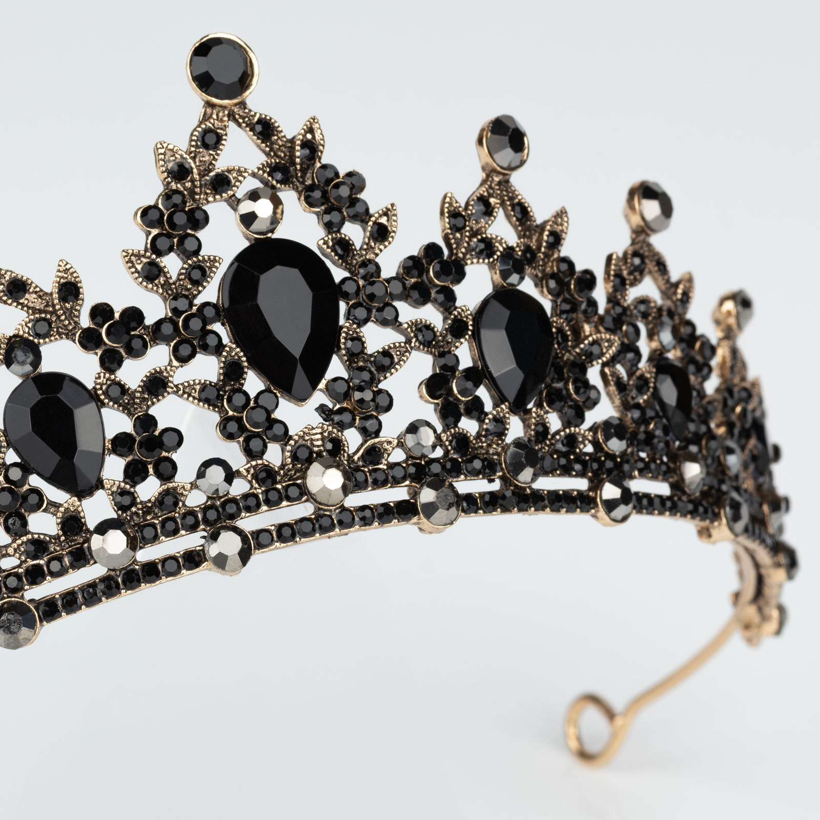 DIADEM Korona Tiara MISS GLOW Wieczorowy CZARNE cyrkonie KRYSZTAŁY