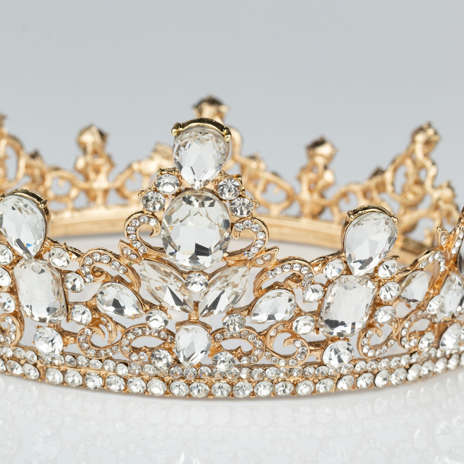 KORONA Diadem Tiara MISS GLOW ŚLUBNA ZŁOTA cyrkonie KRYSZTAŁY