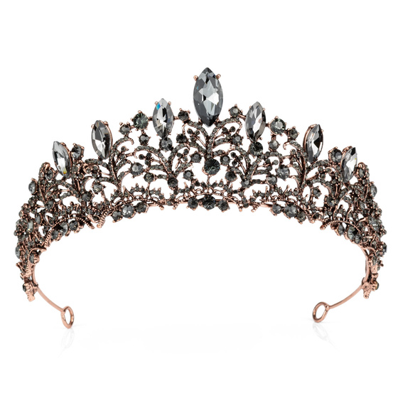 DIADEM Korona Tiara MISS GLOW Wieczorowy CZARNE cyrkonie KRYSZTAŁY