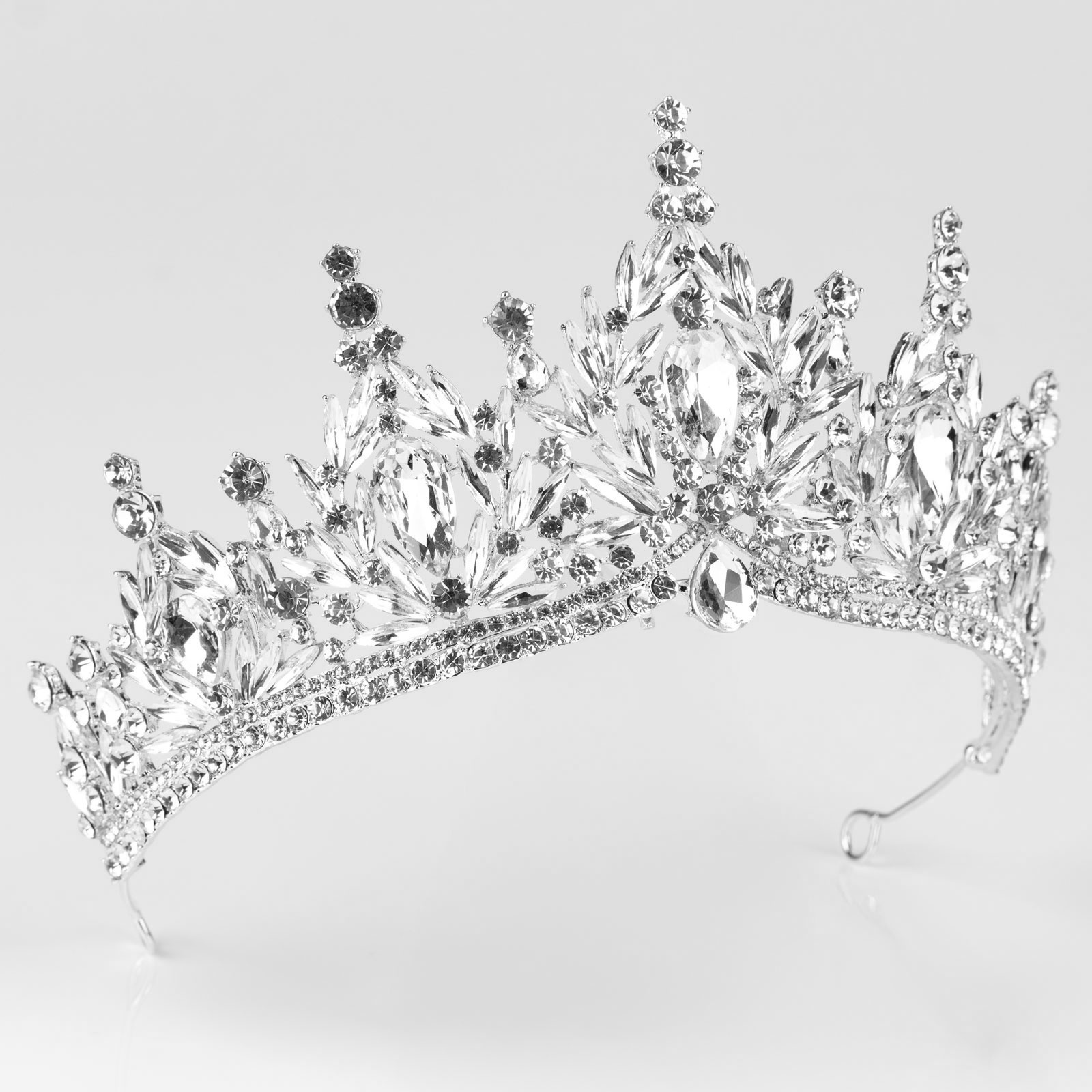 DIADEM Korona Tiara MISS GLOW ŚLUBNY srebrny cyrkonie KRYSZTAŁY