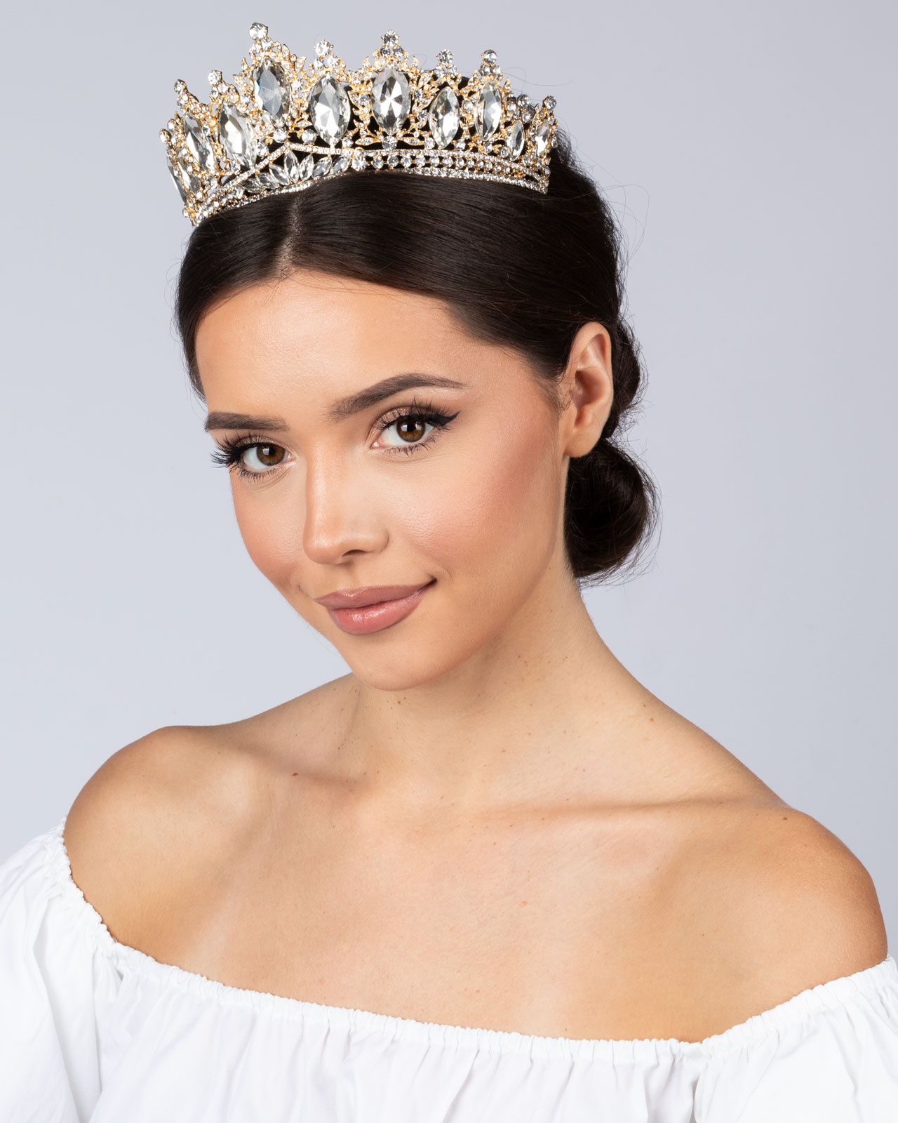 DIADEM Korona Tiara MISS GLOW ŚLUBNY ZŁOTY cyrkonie KRYSZTAŁY