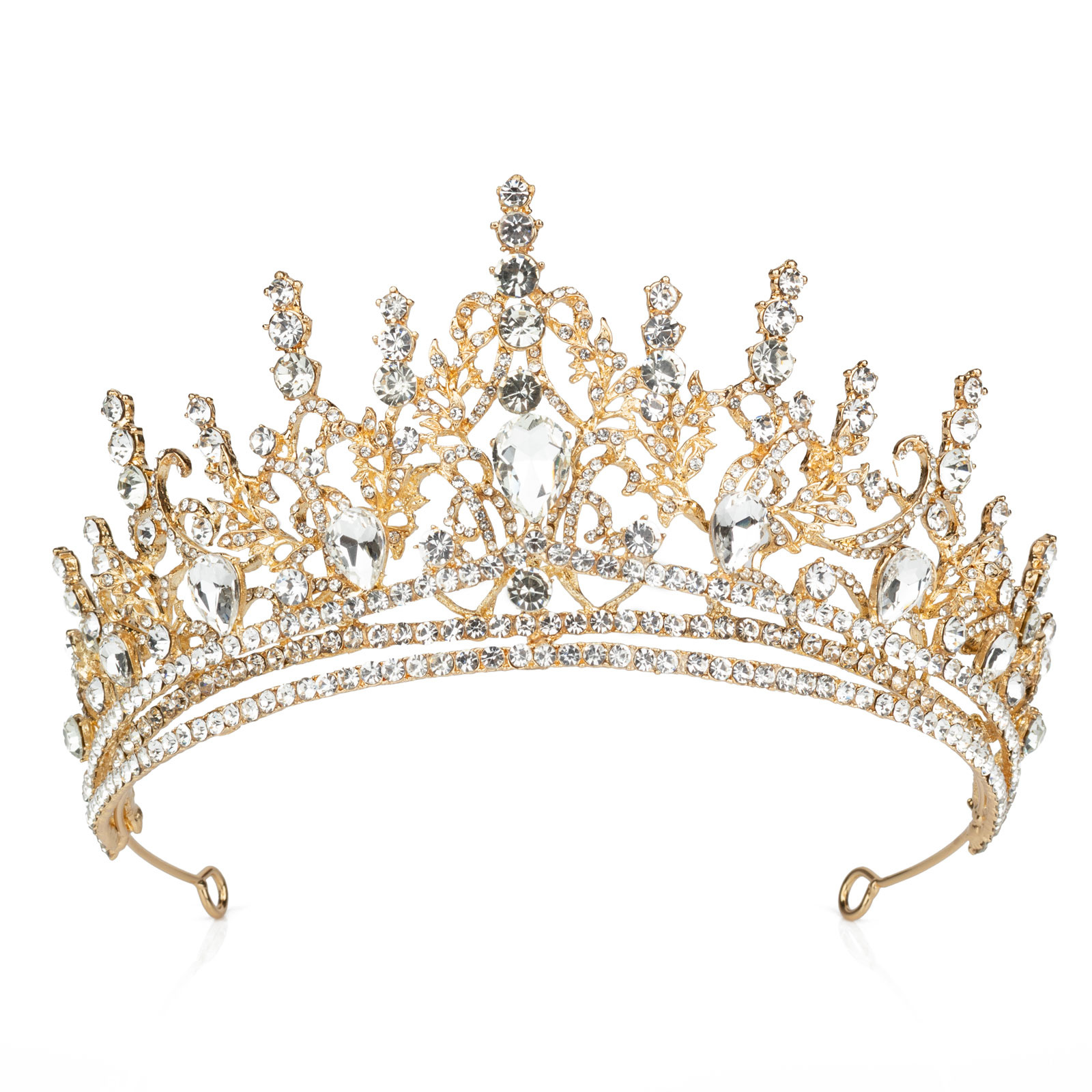 DIADEM Korona Tiara MISS GLOW ŚLUBNY ZŁOTY cyrkonie KRYSZTAŁY