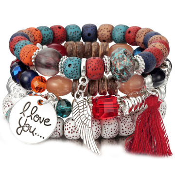 BRANSOLETKI koraliki SKRZYDŁO czerwone I LOVE YOU
